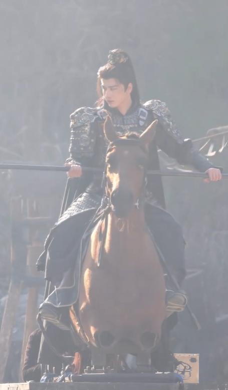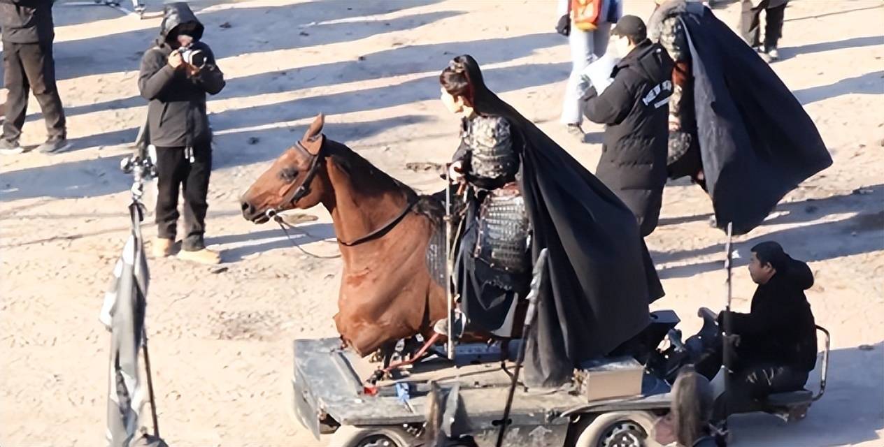 有人发布了《逐玉》的拍摄花絮,能看到张凌赫身下的马只是道具,底下有轮子,需要工作人员在后面推着动。