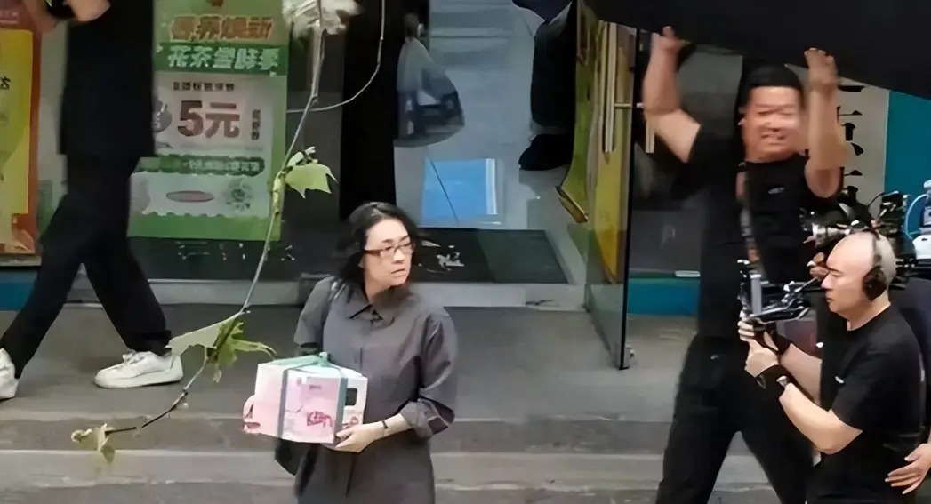 这组照片拍于2026年4月13日,当时新片剧组正在武汉老城区取景,几天前刚转场到汉口兰陵路的面包店门口。照片里的章子怡穿一件皱巴巴的旧灰衬衫,配一条普通蓝牛仔裤,剪了短头发没做造型,素颜架着一副黑框眼镜,整个人看起来憔悴又疲惫。
